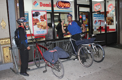 Tonight my roommate wanted to try a new Thai restaurant so I went with her to go get takeout. We waited outside while they got her order ready, I noticed there were SEVERAL bikes with carriers on the back sitting in front of Dominos right next door. A few minutes later, a couple of guys came out, strapped pizza's on the back of their bikes and got ready to make their deliveries. I said out loud, "I have to take a picture!" So this guy posed for me. I'm such a dork, but I thought it was kind of fun...